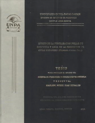 Efecto de la fertilización foliar de nanourea y urea en la producción de chile habanero (Capsicum chinense Jacq.) / tesis que para obtener el grado de Maestría en Producción y Procesamiento Agrícola, presenta Marleni Noemí Díaz Morales ; asesor Ana Rosa Ramírez Seañez